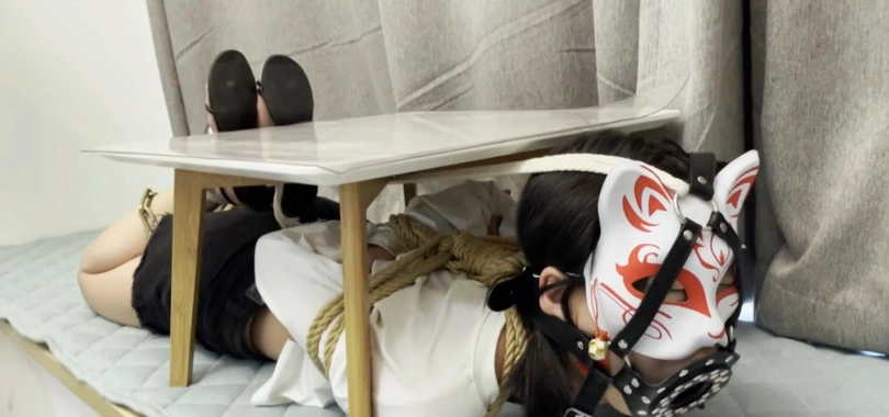 结束之后将手铐自己解开,然后将她日式绑起来关在小屋子里