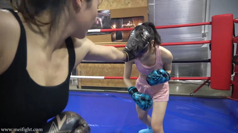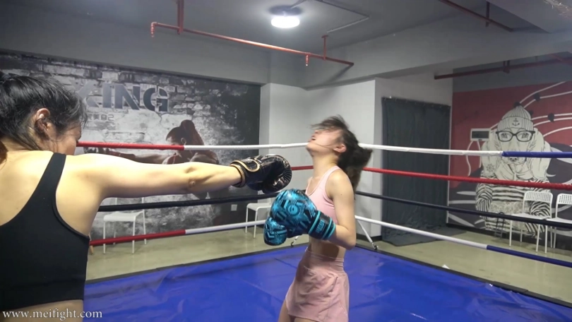 This was not a fair boxing match. As a professional boxer, Tina‘s opponent, yiyin, was a girl who can‘t box at all. As long as Yiyin can hold on for 30 minutes without being knocked out, she can win the prize. Tina didn‘t want to end the game so soon...