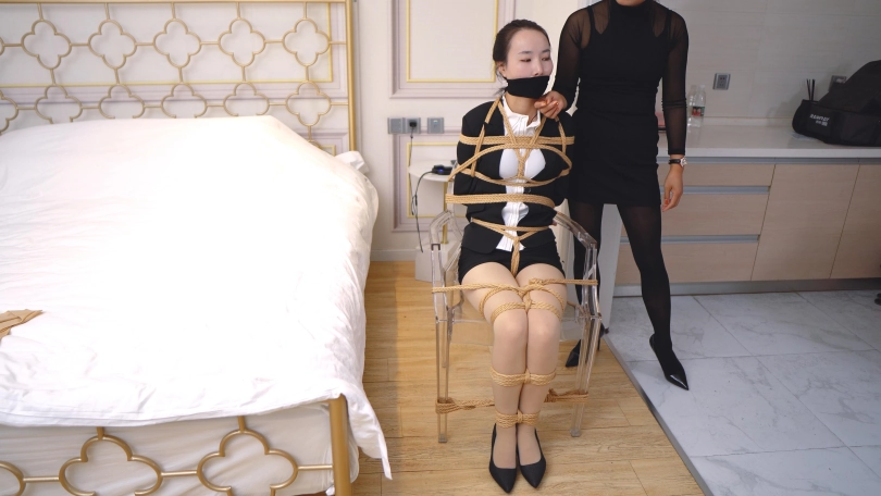 女主播被女劫匪转移回家后,换了一套衣服严密捆绑监禁起来。王丽绳技确实不错,可以看看绑的挺漂亮的。