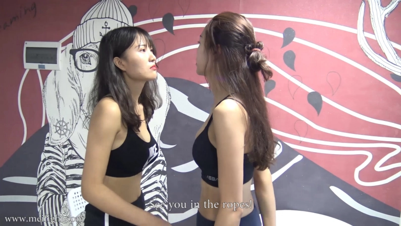 The boxers fighting for $10000 this time are Ziyue (red gloves) and Dudu (white gloves). They all seem to be here for the bonus. Ziyue likes sports, so she looks stronger. Although Dudu says she doesn`t love sports, she seems to have been involved in street fighting. The result of this boxing match is unpredictable…