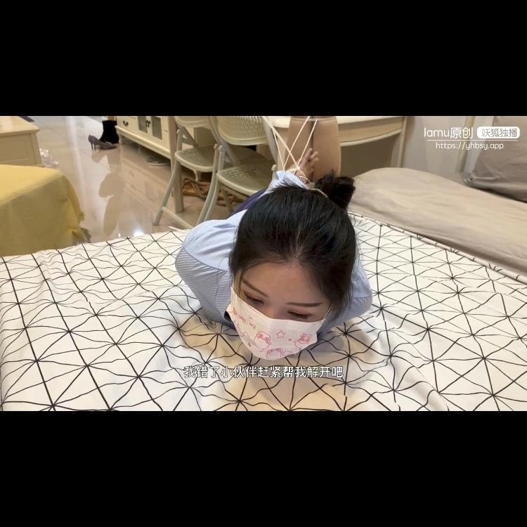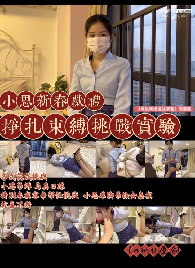 麻绳环节由于小伙伴给力捆绑,根本挣扎不开,不过为了让小思更好挑战,我们请来特别来宾,一位同样被紧缚捆绑的小姐姐(小伙伴的夫人倾力演出,非露脸),看能不能帮助小思逃脱!