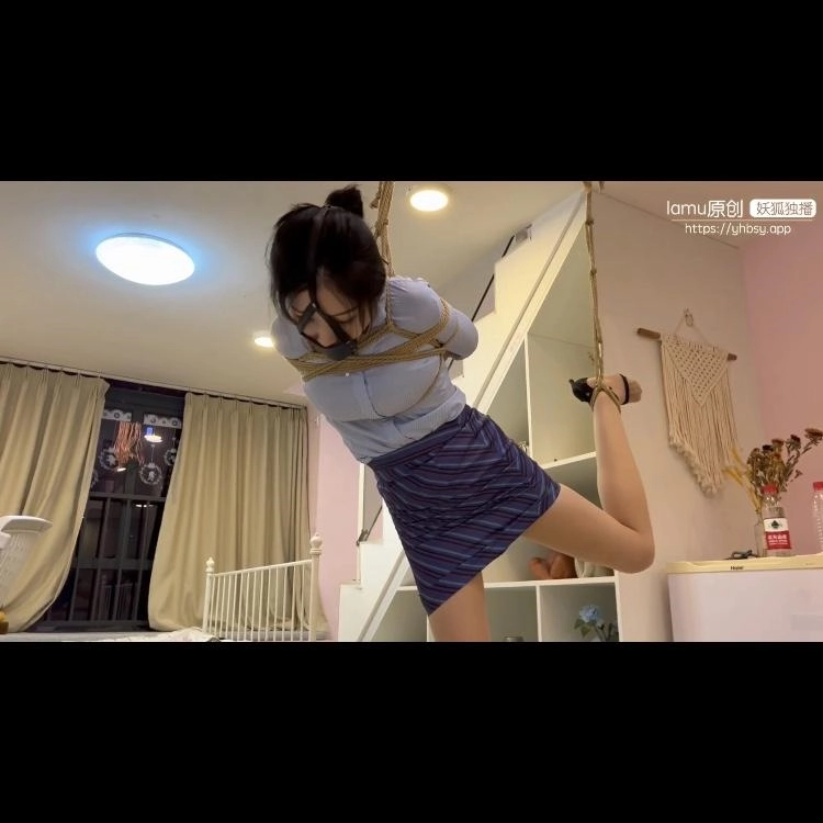 最后环节,小思也理所当然地被单脚吊起来先玩弄,再加个马具口球实现全吊,玩的她是开心得不要不要的!