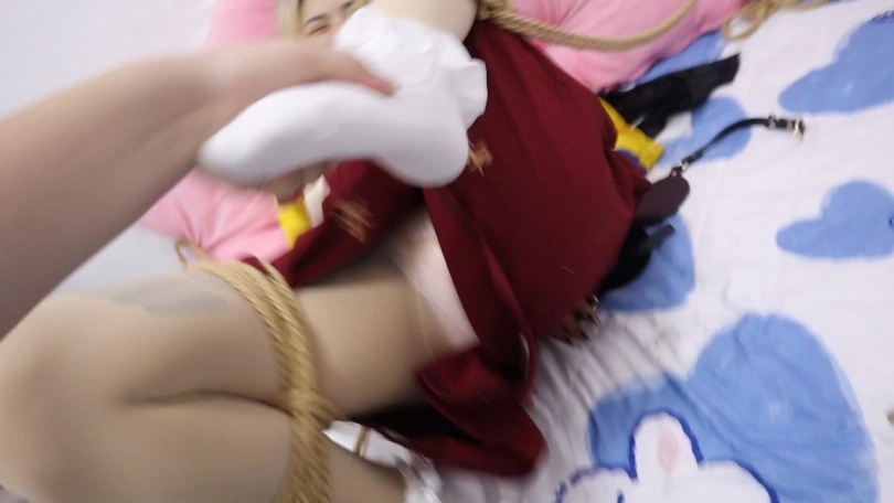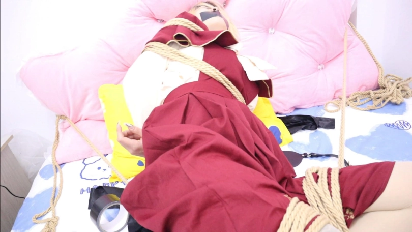 企图跑开,但是可怜的女孩子被死死的绑住根本不能挣脱分毫,