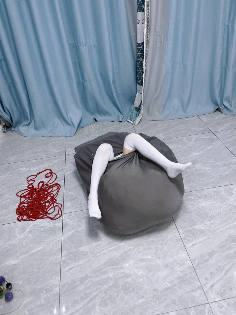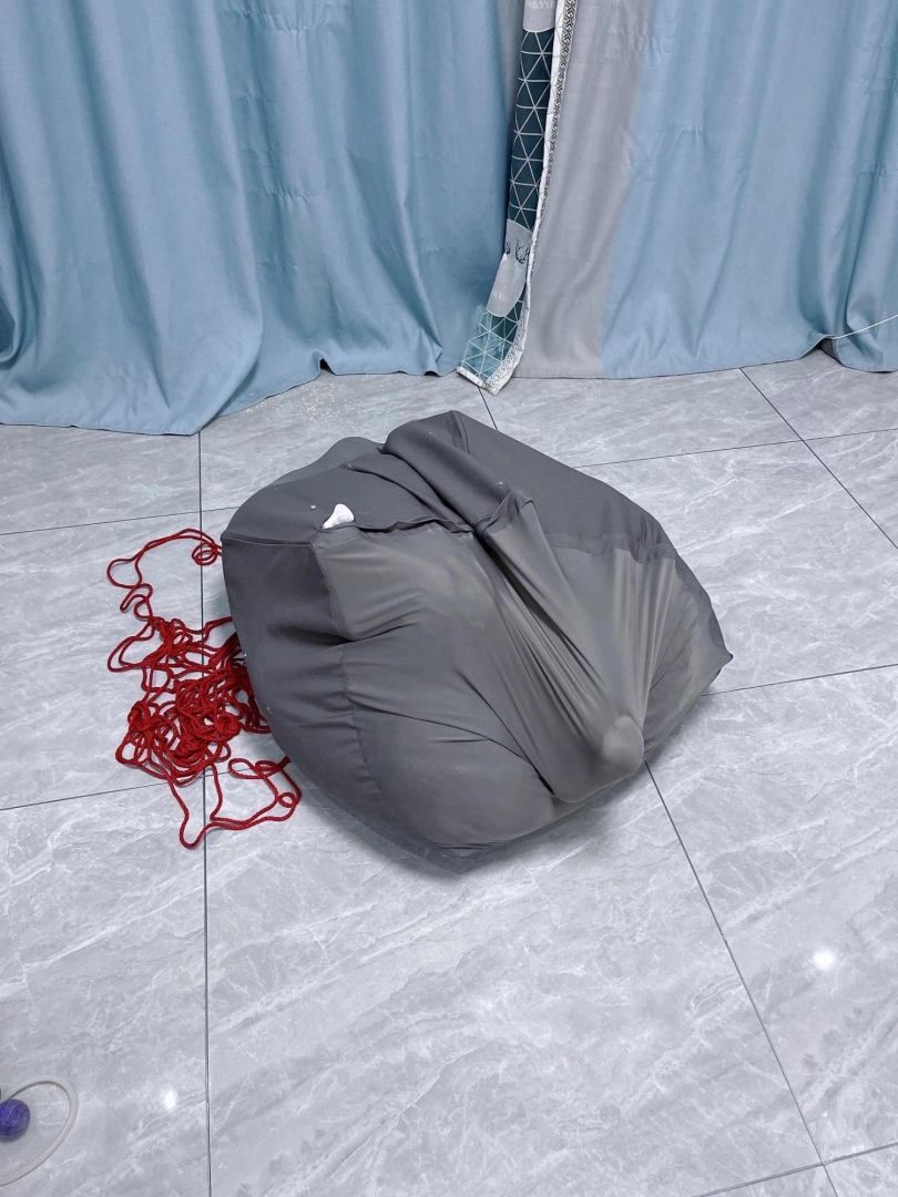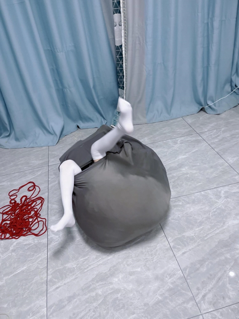 内容:把茶茶双手绑好后,用三床被子卷起来包裹好塞进懒人沙发套里,然后用绳子捆扎。命令茶茶自行脱出。茶茶需要从三层棉被里钻出来后再从沙发袋里破带而出。