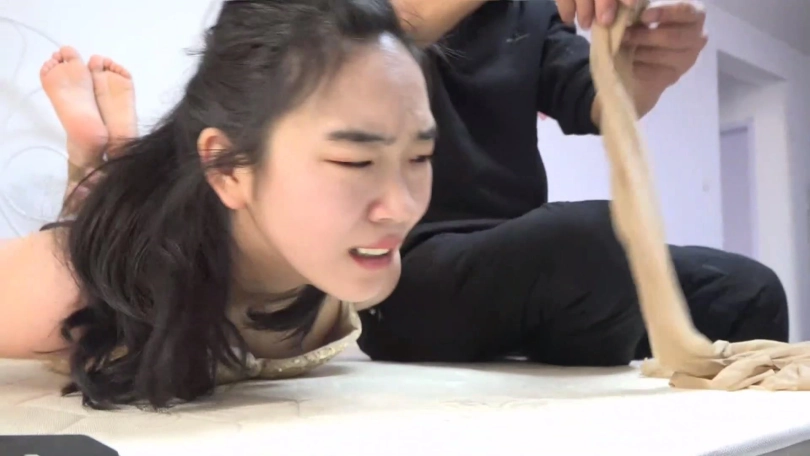 看点:塞嘴封嘴过程细致展现,逃脱未遂二次捆堵,五花驷马挣扎,裸足脚面近距离特写。