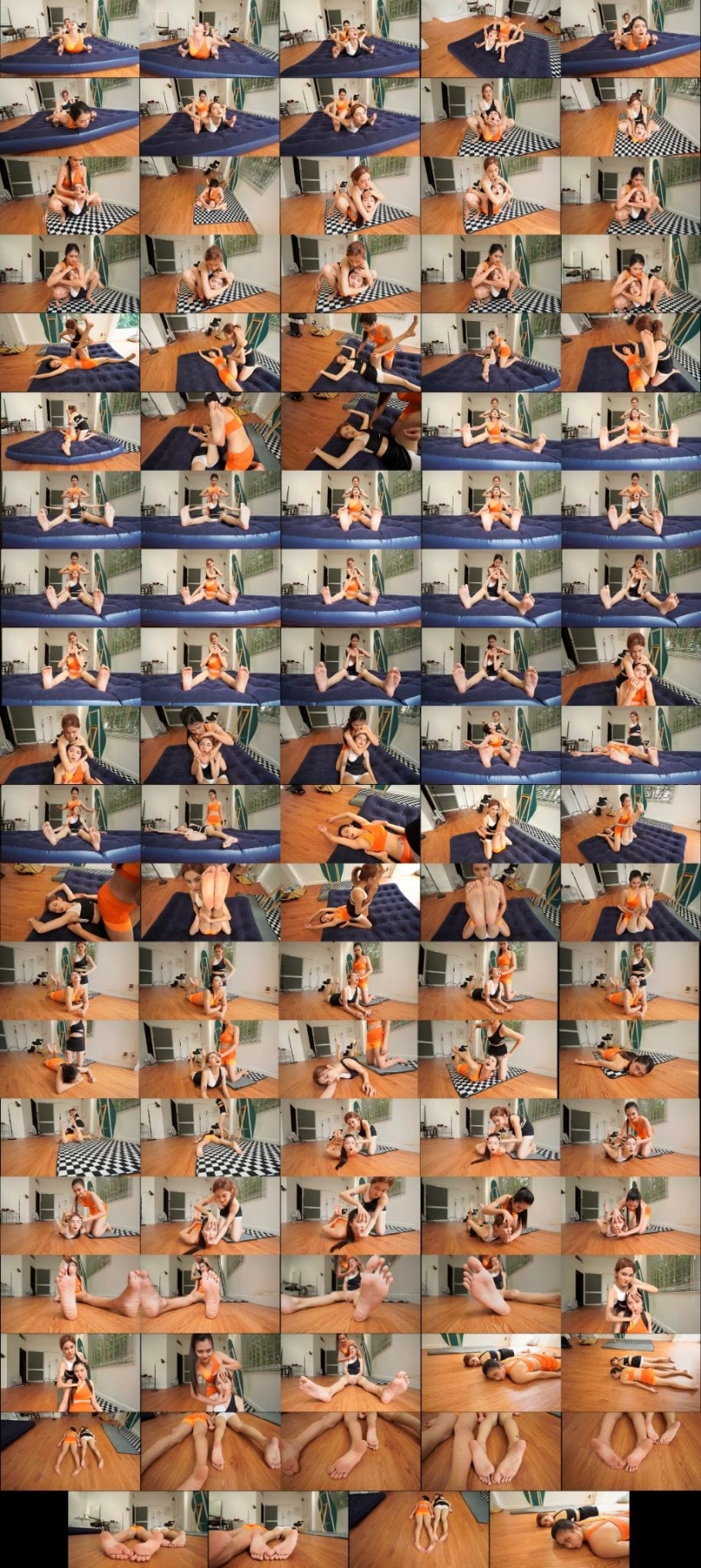 Julie (Orange) wrestles with Rose (White). Rose got the upper hand at the beginning of the match and knocked Julie out multiple times then she humiliated Julie by squeezing her mouth and opening her eyes at the end of round 1. Julie then took revenge on Rose in the other half of the video. In the end, both girls manage to knock each other out and the viewer can have a nice view of their pretty soles :D