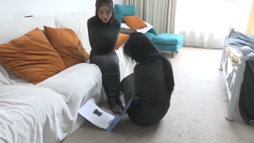【逍遥】《黑色美人茧——双木乃伊紧缚02》2位美女被层层包裹 变成诱人的黑色人茧