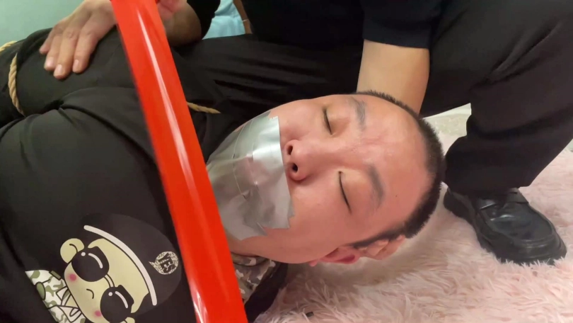 胡子哥想跑,又被吴晗和男友捆绑更结实,吴晗笑着说胡子哥吃女朋友的丝袜不好吃吧,换我的尝一尝,当着胡子哥的面脱掉腿上穿的一条肉色连裤丝袜,拽出胡子哥口中肉色短丝袜以后慢慢把一整条自己原味肉色连裤丝袜塞入他口中,用银色强力胶带5张封嘴,再用红色胶带和黑色自粘绷带缠绕若干圈封严实。
