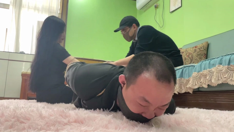 胡子哥经常和吴晗以及吴晗弟弟作对,不堪其扰的吴晗带着男友入室迷晕捆绑胡子哥,故意拿胡子哥女友穿过还没洗的几只肉色短丝袜一只只塞到他嘴里,而后去翻找胡子哥的财物。