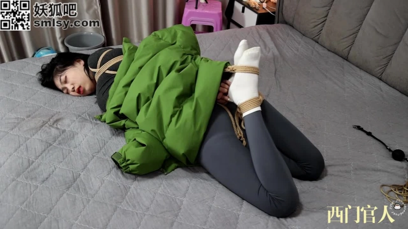 很好的诠释了床、人、绳之间三物的精彩,捆在床上的同时开着冷气裹着大衣,又冷又热,身上绳,口中球,驷马缚,接着拿出口球换上鞋子,裹上大衣呼吸不了一点,TK,挠痒,放置,挣扎,高跟应有尽有。