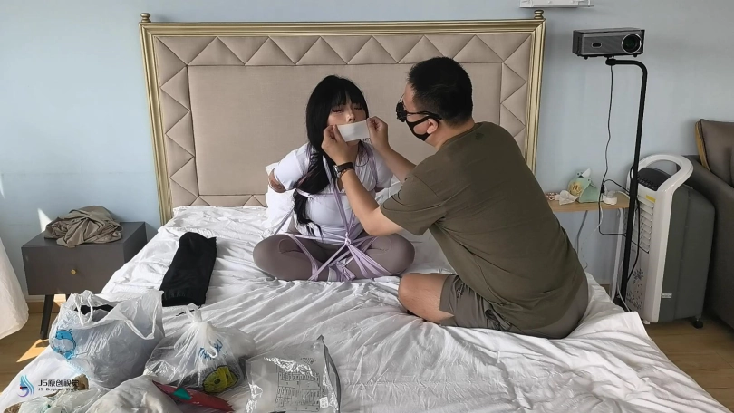 【JS】新模首秀【曼妮】紧身瑜伽服丝绸团缚白袜毛巾塞嘴超粘胶布鞭打恋足棒棒刺激