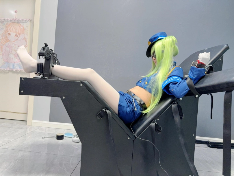 这时我给出新的挑战:只要自己在持续被挠痒的情况下解开手铐和足枷我就放过她~