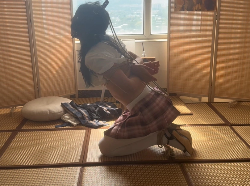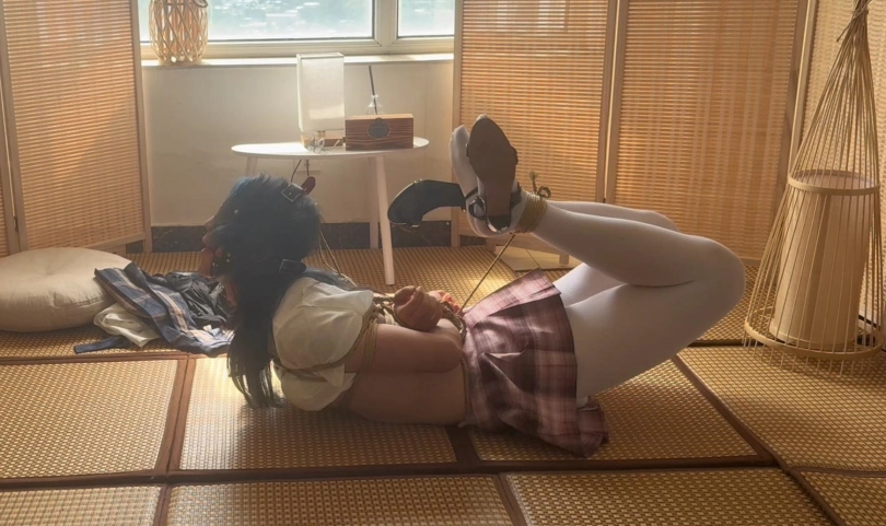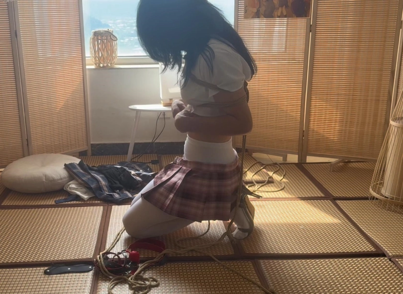【柚里】南娘柚里面试绳艺公司,被要求换超短裙jk自缚,柚里因为放心就打了死结但hr突然离开让柚里独自无限期挣扎解脱…柚里能否脱出呢~