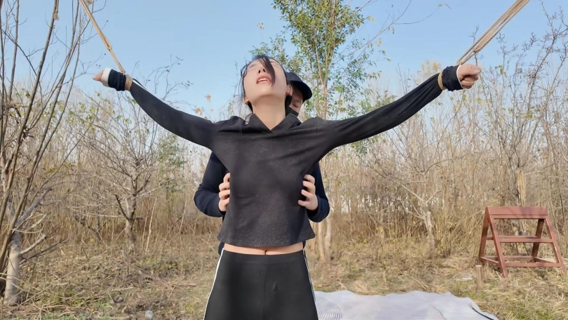 十一晨跑被歹徒抓住,进行一系列折磨挣扎,上集歹徒把十一绑到柱子上用棒棒震到失禁,抓起来带着湿身的裤子,大字捆绑,各种鞭打,TK,又把手脚绑到地上四根柱子上,成大字型,屁股朝上,用力打屁股,打完翻过来仍然是大字型,继续折磨....折磨之后扬长而去,留下十一在地上苦苦挣扎