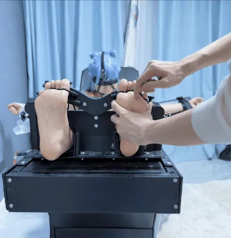 2.用鼻钩固定鼻子到刑床后方强制抬头,因为小鼻子被拉扯,哪怕在被挠脚心的时候也连摇头都做不到!!