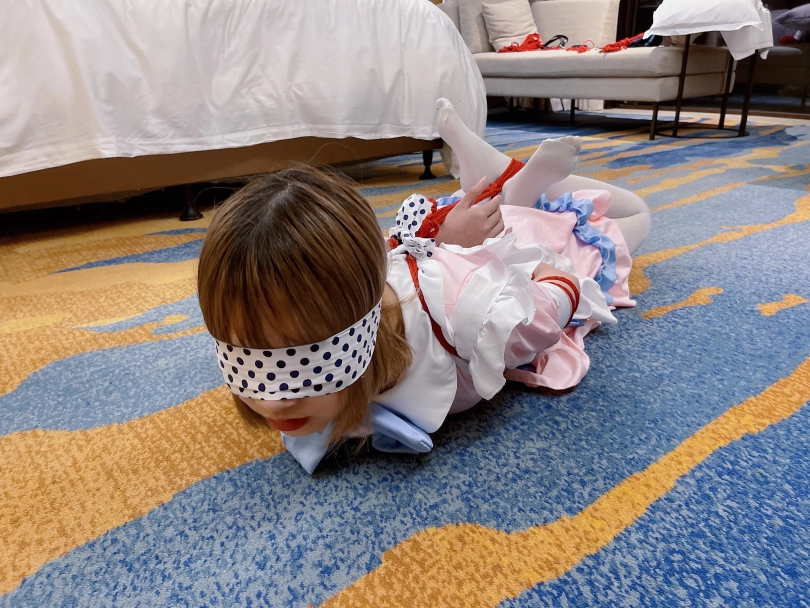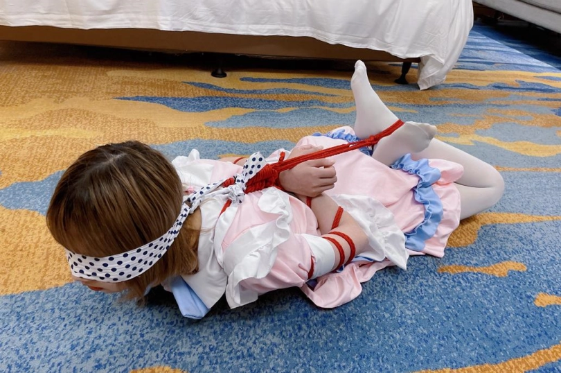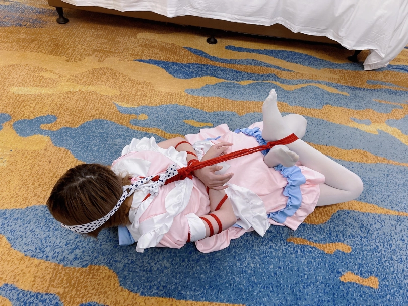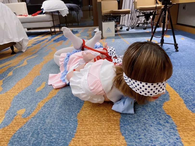 本期突出一个扎实。对穿着白丝女仆装的小妹妹当然要绑的结结实实啦~上半身采用了最扎实的传统五花,手臂上的肉被绳子勒成一截一截的正是五花扎实的魅力。