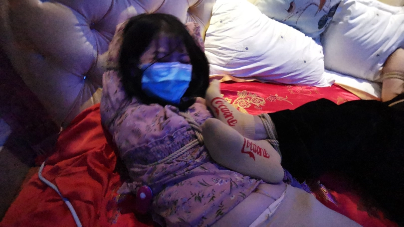 捆绑好后让她们都躺在床上,棒子挑蛋轮番伺候,双方彼此用脚攻击对方脸部。。