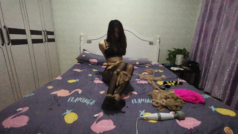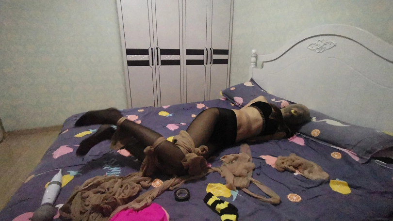 【JS】瑾萱-丝袜束缚 棉袜堵嘴套头 粉色丝袋全包 [不可描述]棒刺激