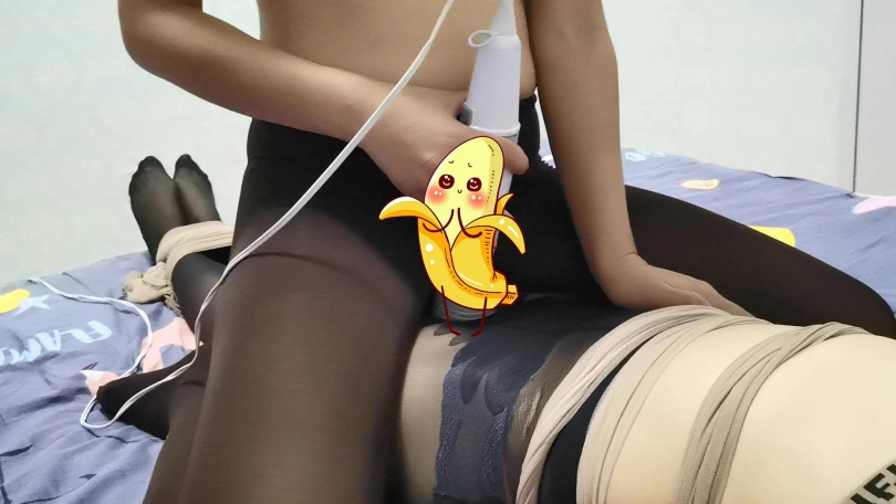 接下来轮到瑾萱体验捆绑,若灵用丝袜将瑾萱全身捆绑起来抚摸着她的身体,手不断的在瑾萱敏感部分游走。并亲吻着瑾萱。若灵用一条连裤袜套在瑾萱的头上。骑在瑾萱身上,拿出[不可描述]棒放在两人敏感部位中间,打开开关,两人一起体验着这种强烈的刺激感觉,她们的呻吟声也越来越大。。。