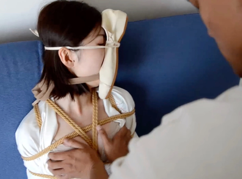 女孩被扒光,浑身赤裸,白裤袜被脱到膝盖处,像一滩烂泥一样躺在地上抽泣着。歹徒把女孩拉起来,重新穿好丝袜,裙子和鞋子,绑了起来,又给女孩嘴里塞进了丝袜,外面带上口球。