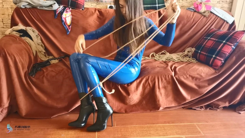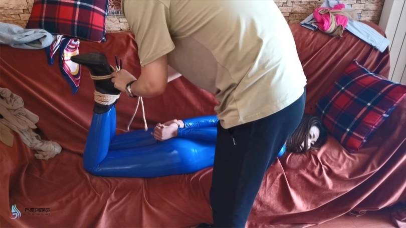 【JS】瑾萱 蓝色胶衣 欧式直臂捆绑 丝袜套头勒嘴 DD刺激