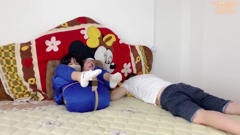 第三集:司机坐在床边示意女生走到自己面前,女生夹紧身子害羞站过去,司机开始捆绑TJ女孩,被司机双手抱住双腿的姿势捆绑起来, 司机不一会就在旁边睡着了,由于bangbang的噪音和女生的呻吟让司机无法睡着,司机翻了几个身,随后大怒 司机重新更严厉的捆绑了女生,用绳子把bangbang固定在女孩的下面 手也捆住握住bangbang完全动不了然后让女生重新抱好双腿靠回床头,这一次司机让女生。双手握住长bangbang的手柄,位置正好压在女生yin部,用绳子把长bangbang的头部和dang部股绳连好,这回,女生双手会把长bangbang一直抵在自己的yin部,如果女生晃动双手,则会牵拉裆部的股绳,也会通