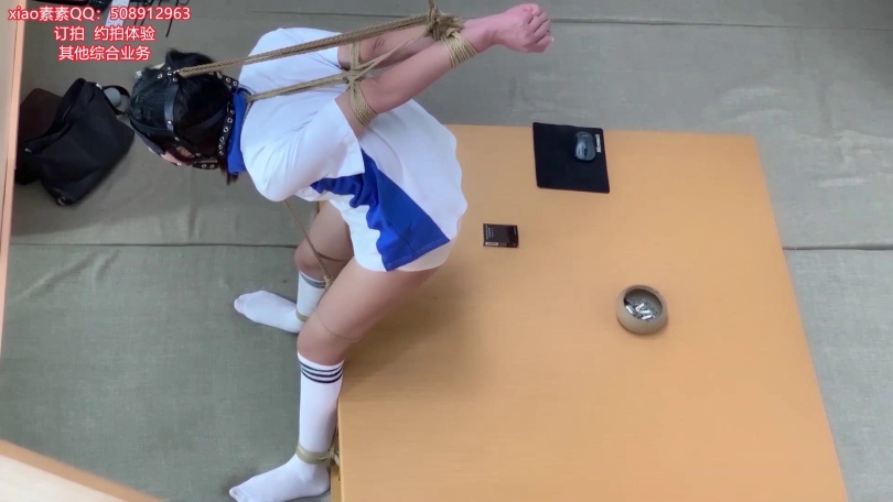 最致命的是,连着欧式头的绳子 强制抬头 的同时,连着脚的绳子强制弯腰! 这个是双向牵制的效果! 所以 这20分钟xiao素素除了嘴巴发出一点呜呜呜的声音 其他什么都做不了!