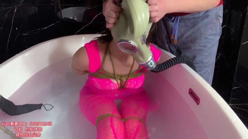 【xiao素素】粉色连体网衣捆绑洗头泡澡浴缸里TK求救挣扎