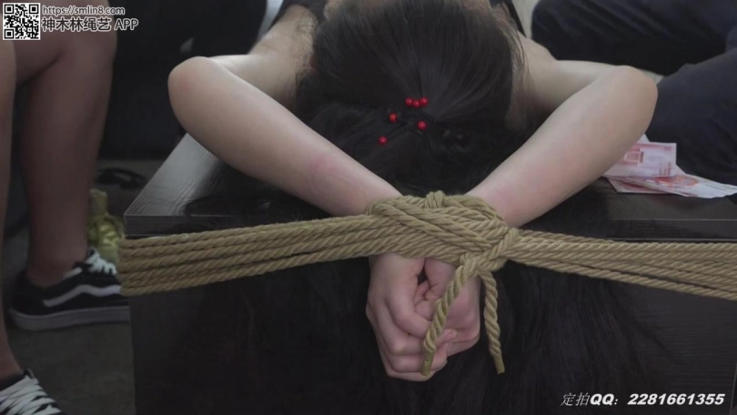 接下来是马老板捆绑甜甜,他把甜甜捆得跪在地上双手吊了起来,然后三个人继续玩牌。最后三个人想到了一个更好玩的办法:把甜甜绑在了茶几上,然后三个人就在甜甜的身上玩起了牌。。。。三个老板玩的很开心,约好了下次再来玩。甜甜拿着刚赚到手的钞票,不知道是喜还是忧。。。。
