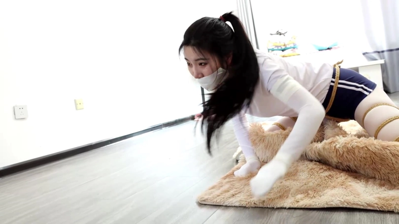 性感的白丝日式体操服美人被人强迫捆绑囚禁,期间她奋力反抗但手被包裹成球最后还是失败告终,被男人打晕,美女醒来发现自己被奇怪的方式捆绑的只能趴地蠕动,如同一只可怜的人形小狗一般。