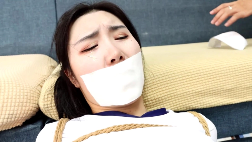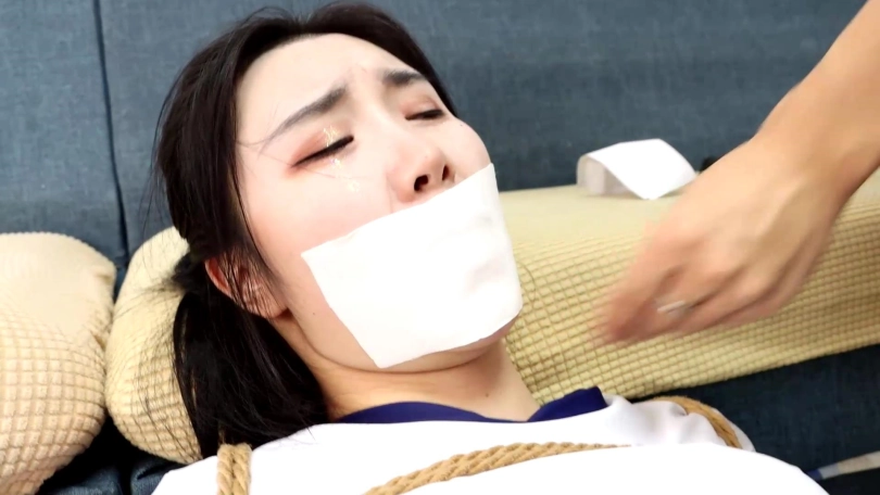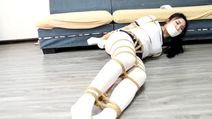 美女被盗匪加固封嘴,吃力蠕动逃跑被发现,白丝美脚被歹徒挠痒到失禁,最后虽然盗匪离开,但美女因为丝袜美腿被[不可描述]弄湿,地面也太滑根本无法站起来,结果美女被自己的[不可描述]干扰的无法逃脱。