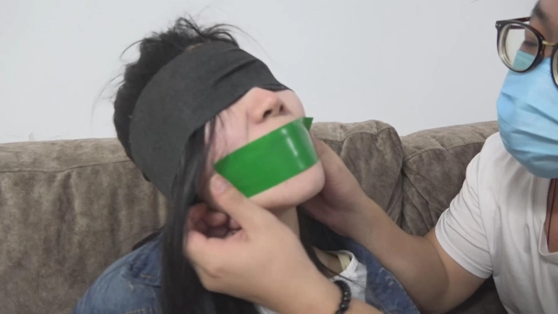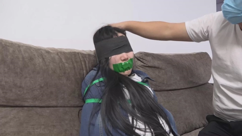 说完搂着妹妹进到屋中,并使劲的把妹妹按在沙发上,直接用宽胶带把嘴给封住了,让妹妹的所有声音都变成了呜呜呜...接着用胶带捆绑起来。手腕、小腿、大腿,为了防止妹妹剧烈挣扎,在妹妹的胸部连着背过去的手臂也狠狠的捆了几道,胸部的紧缚是妹妹的身材进一步凸显。最后把眼睛也蒙上了。