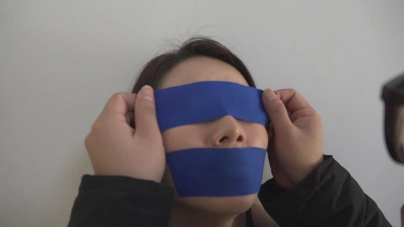 姐姐把自己绑了起来,还用胶布封住了自己的嘴巴。