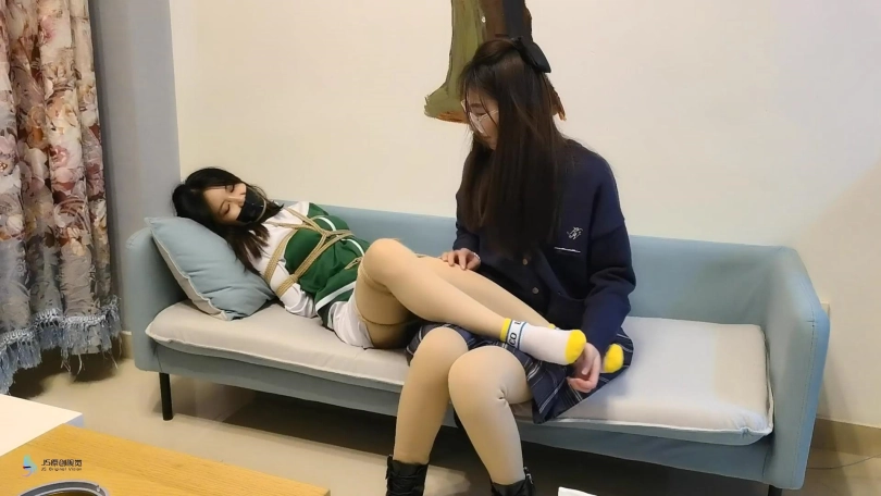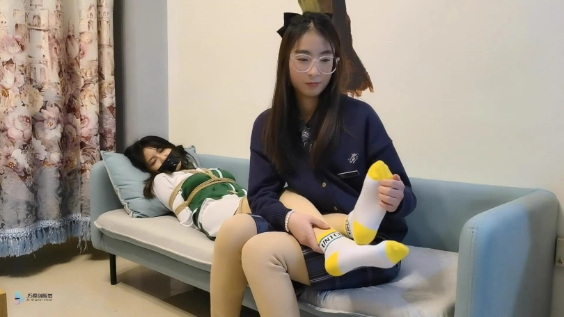 采文是一名人贩,这天老大打来电话催货,正愁没有合适的肉货时,来了一名上门推销袜子的女孩,见她形象不错,决定把她卖了。趁女孩不注意将其捂晕捆绑起来。为了让女孩乖乖就范,采文脱掉她的靴子,不断的挠她的棉袜脚丫。看对方不再挣扎,以为女孩已经被制服,迫不及待的出去给老大打电话。而女孩趁机挣脱了束缚。。。