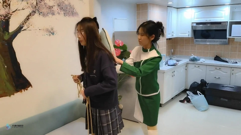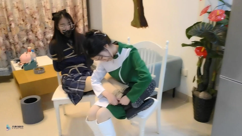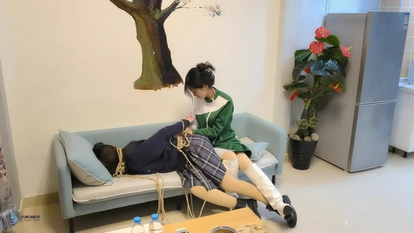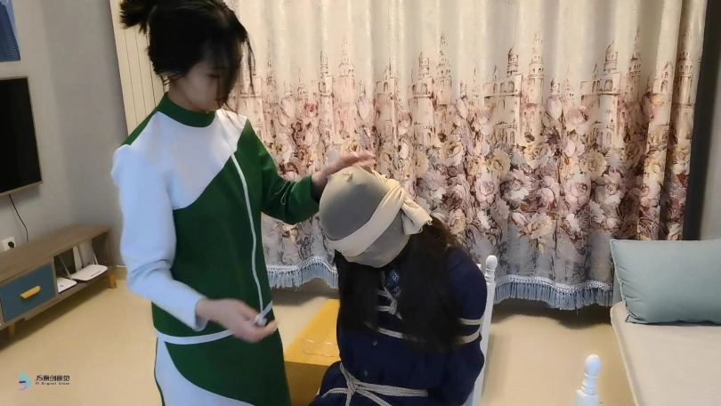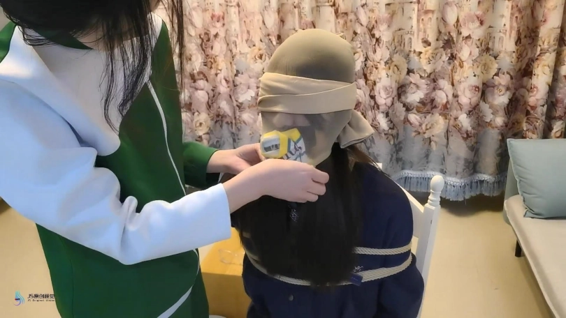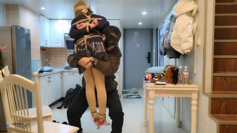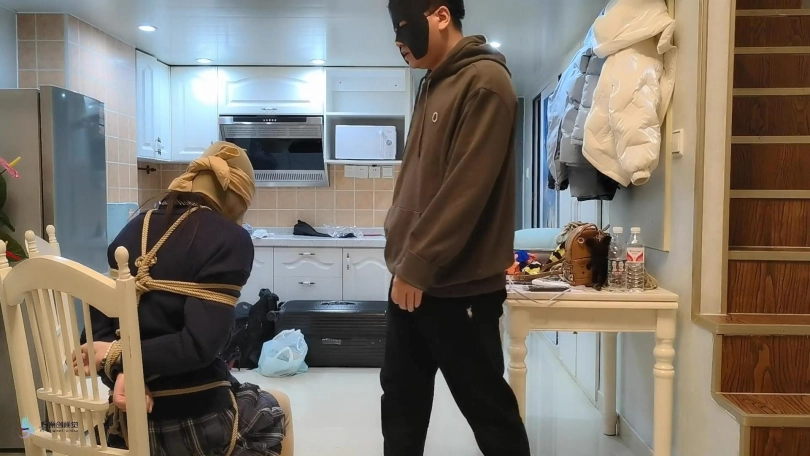 接上集:人贩回到屋内发现女孩不见了,女孩从背后偷袭人贩打晕捆绑起来,脱掉人贩的鞋子,用同样的方式折磨着她。离开之前女孩把人贩“打扮了下”。头上套上丝袜,脱掉自己的袜子塞进头套里让人贩闻。连裤袜蒙住眼睛。做完这一切女孩满意的离开。过了一会同伙来取货,错把戴着头套被捆绑的采文当成肉货运走贩卖。。。