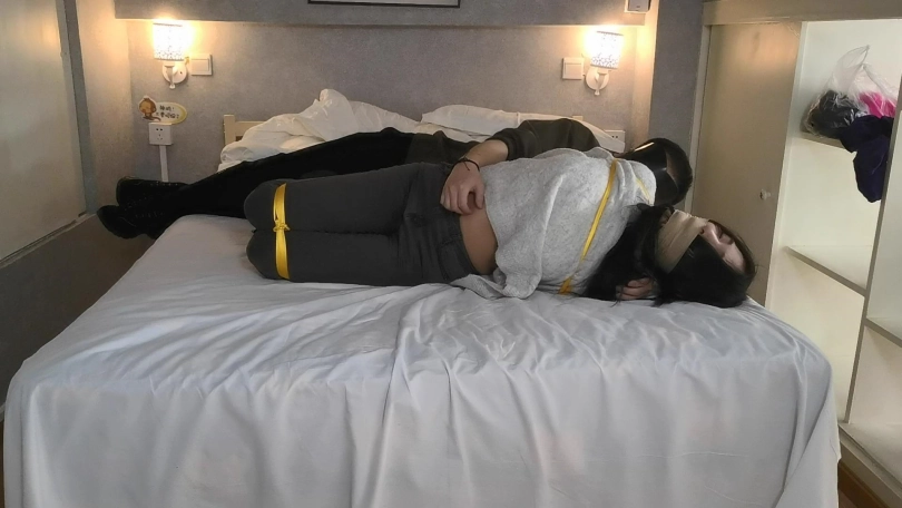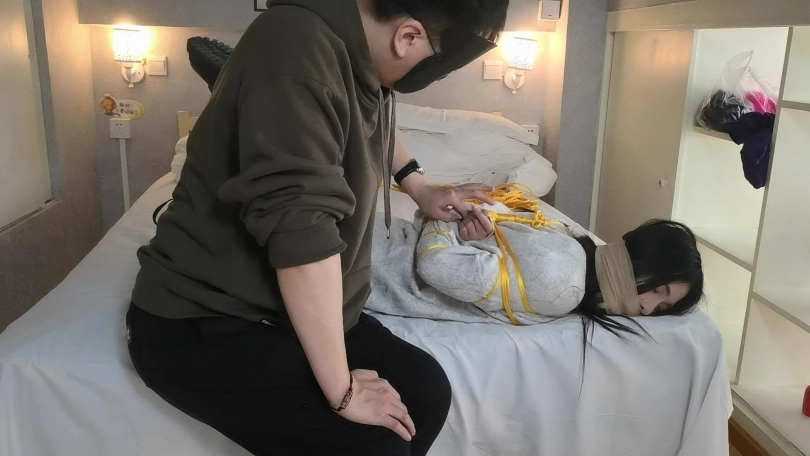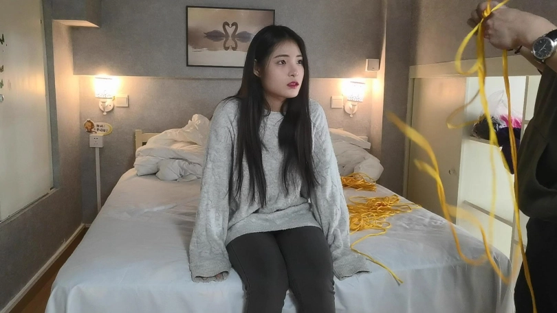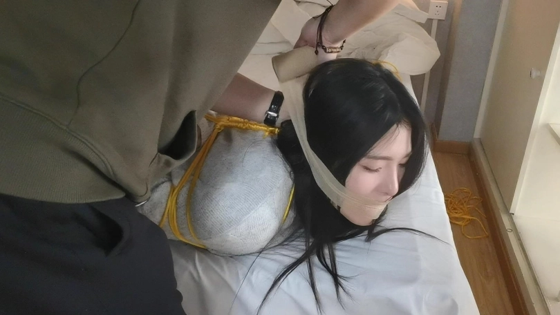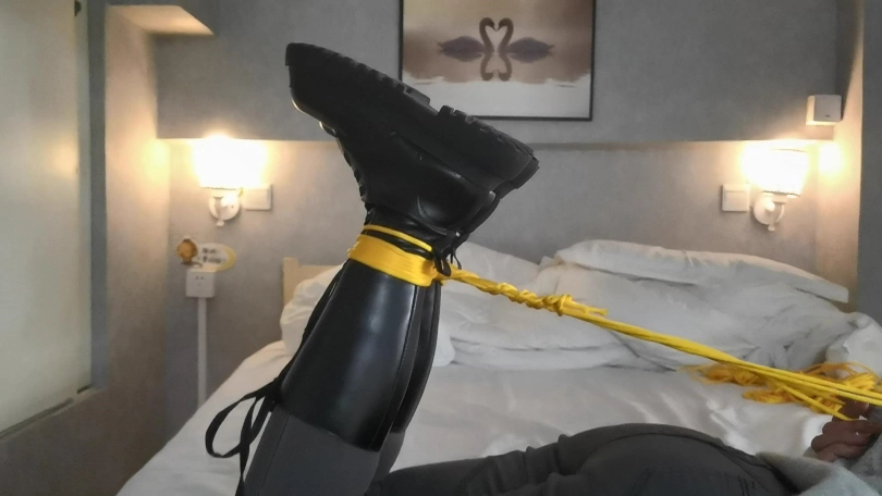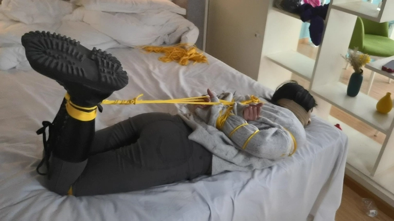 玖念穿着一双黑色长靴,用金黄色的绳子将她驷马捆绑在床上。嘴里用她穿过没洗过的袜子堵嘴,用绷带缠绕。玖念很怕痒,全身几乎每个地方都很敏感,稍微一触碰就会痒的不行,就连朝她肚子吹气她都会用反应。。。