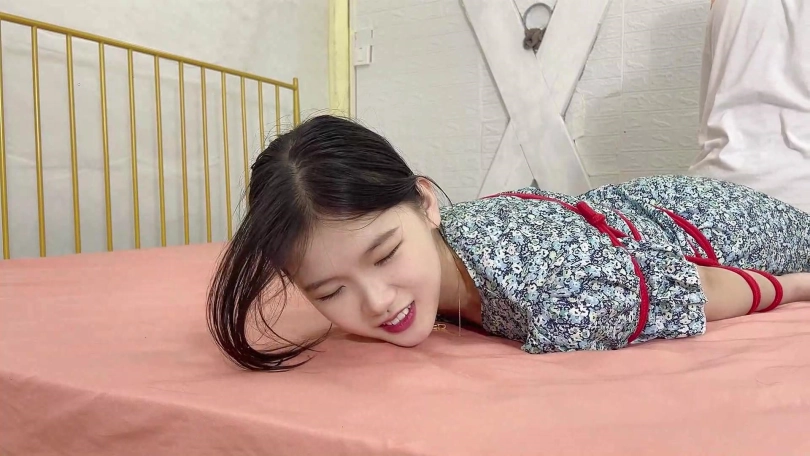 被男子KB压在床上动弹不得,时而笑,时而难受,表情真实的反应出内心的感受。