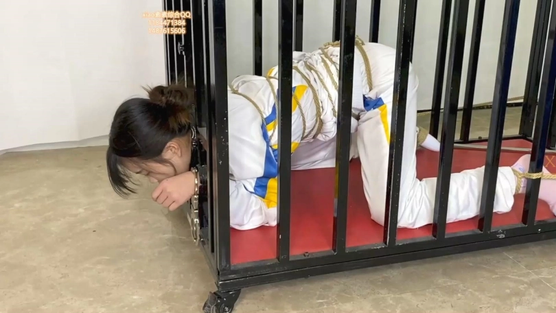 校服学妹朵朵被关进铁笼手颈枷拘束