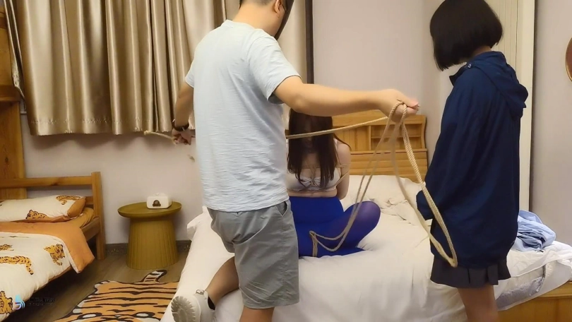 【JS】【露楠】蓝丝内衣团缚棉袜堵嘴丝袜套头胶带缠绕