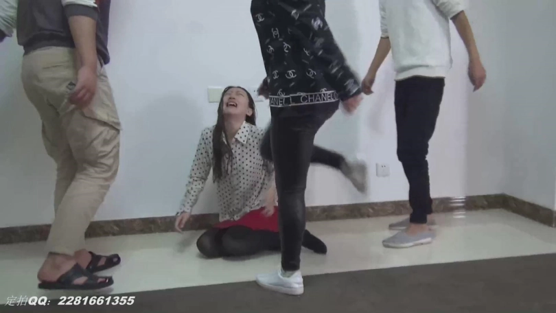 俏丽少妇文之雅的家里忽然来了三个不速之客,原来是文之雅的儿子小明在学校打了同学军军。文之雅的蛮横态度把对方激怒,三个人对文之雅一顿暴打,还拖到卫生间在涮拖把的污水桶中多次把文的头按进去。。。。。。