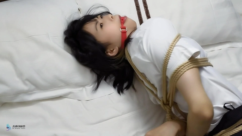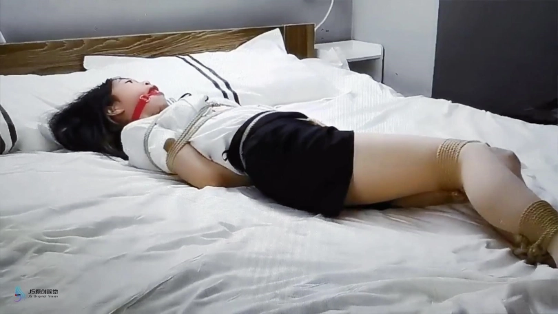 “激辣”来到出租屋,她坐在沙发上看着手机,但她不并不知道这是一间很恐怖的房子。一双邪恶的眼睛正在盯着她。从房间的角落里爬出一根绳子,慢慢的向她的方向移动。此时房间的灯光也开始一闪一闪的。就在绳子延伸到她的脚下时,她起身去重启了灯光的开关,灯光恢复了正常,“激辣”也暂时逃过一劫。当她回到沙发的时候,发现投影仪自己工作了起来。而投射在墙上的画面是一名全身被绳索紧紧束缚着的女孩在挣扎(是未来的“激辣”)。她揉了揉自己的眼睛,认为自己太累了产生的幻觉,便[X_X]睡觉休息。当她熟睡后,很多根绳子从角落里再次袭来,缠绕着“激辣”的脚,腿部,臀部,胸,手臂。而此时的“激辣”表情也很痛苦。是的,她在做梦,梦境中还是出现了那个被绳索紧紧束缚的女孩。当画面再次出现时,我们的主角“激辣”全身已经被多根绳索紧紧的捆绑着,她的嘴巴也被塞进一个口球。没错,这和她梦境中的情况是一样的。“激辣”醒来后很是惊恐,她不明白是怎么回事,自己怎么变成了这样。她用力的挣扎着,并试图呼救。但她嘴里这能发出“呜呜”的声音。随着她体能的消耗,这时走进一名男子。将“激辣”绑成一个驷马的姿势,并告诉“激辣”,他用很低的价格将房子租给年轻,漂亮的女孩们。再用施加魔法后的绳子束缚住她们。然后将她们当作奴隶贩卖给别人。男人让她不要在挣扎了,他会给她找个很好的主人。说完便离开了。此时的“激辣”知道这是一个阴谋,她用尽全身的力气去挣扎,但很显然绳子没有丝毫松动。看来她被贩卖成为别人的性奴将是她最后的结局。。。