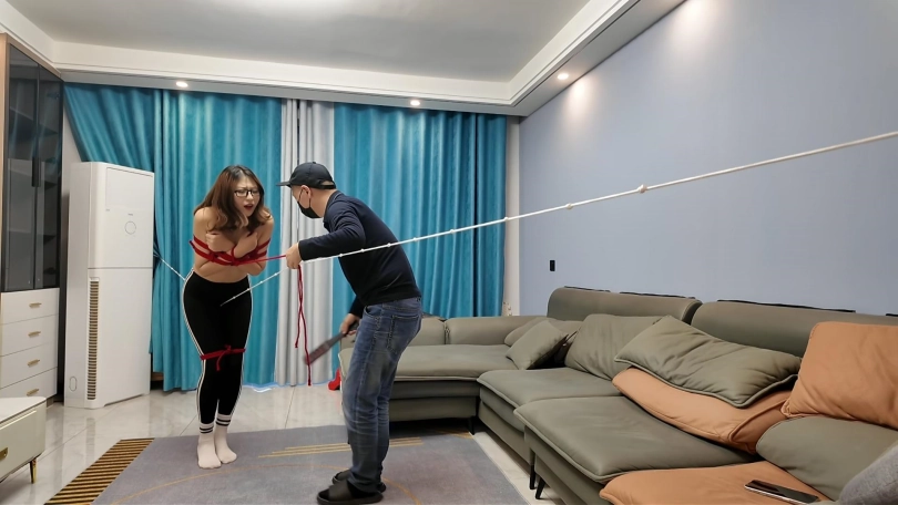 晓琴被绑架后,打屁股更是升级,反正捆绑到床上打,打完又带到家里,红绳捆绑走绳折磨,后手直臂带到浴室滴蜡,淋水,墙高,最后环节可以细心观看,真喷