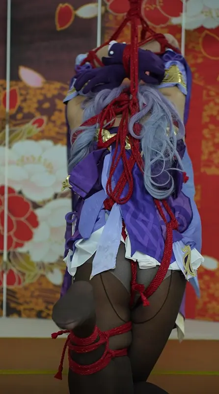 直播中的刻晴被大哥一份礼物要求吊起单腿,还不满足,强制跪立后是强制单腿站,还有人对她上下其手,而她只能无助被调戏