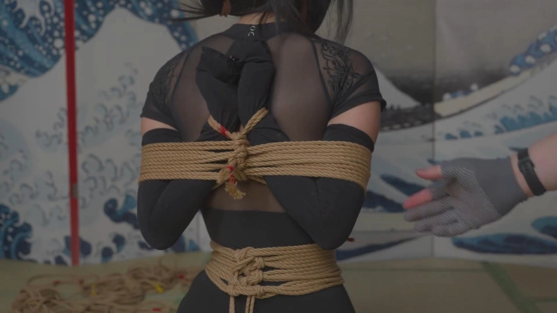 【渎竺】【嗷嗷】日式后手加单折腿地面身体吊缚测试!附带后手观音制作过程