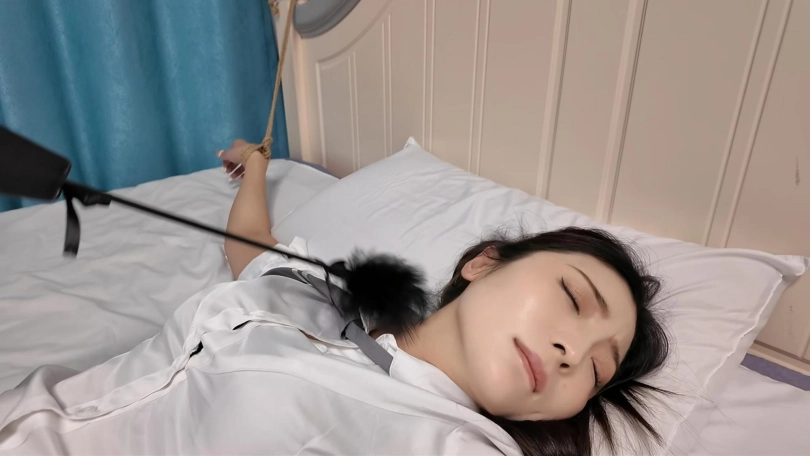 学生把老师迷晕扶到卧室,大字捆绑,这下可以随心所欲玩弄美足了,把黑丝美腿抱着怀里好好把玩,玩醒之后用鞭子抽,竟然还拿出了棒棒,弄得老师娇喘不断,高超不断,最后被愤怒的老师用铁链勒过去了.