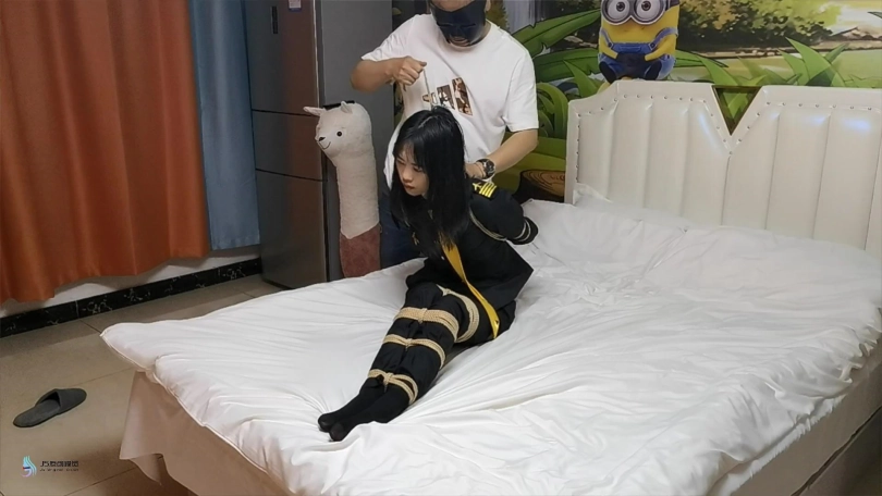 如果制服是一名侦探的骄傲,那么身着侦探服被束缚的⼥主现在⼀定是屈辱不堪的。⽼⿊怜⾹惜⽟,只想玩弄羞辱⼥主,却不想痛下杀⼿,遂帮其换上制服,再绑得动弹不得,随即再将其裤⼦拉到⼤腿处,漏出⿊丝包裹的臀部。⽼⿊玩弄了⼀会她的⿊丝脚掌,把⼿机放在远处,冷笑道:“如果⾃⼰解不开,别忘了打电话给你的男同事。”留下⼥主⼀⼈在屋内挣扎。