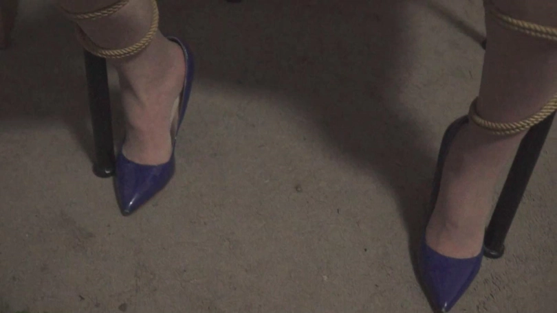 这个人被紧紧的用绳子拘束在一把椅子上,脸上被胶布紧紧的密封着,几乎只露出眼睛和鼻子。只看着她努力的