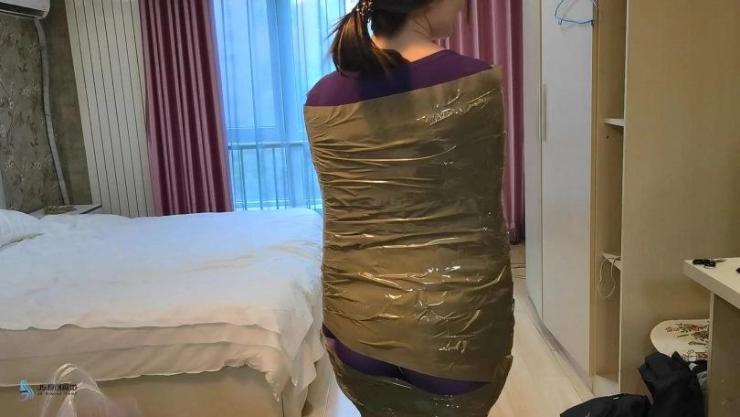 【JS】【艾菲】胶带木乃伊游戏捆绑丝袜连体衣棒棒刺激