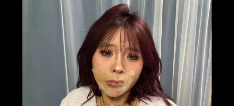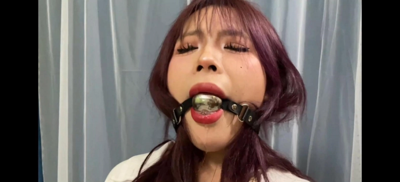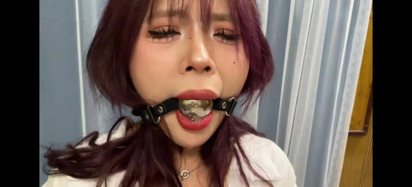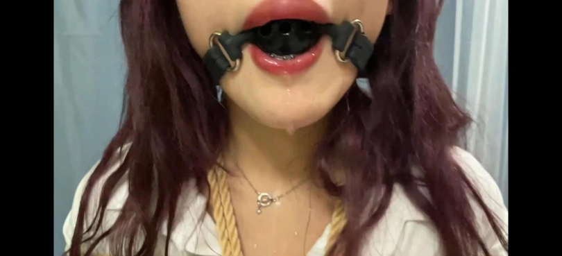 丰满的曼妮身穿白色短衬衫和短皮裙,搭配黑丝和华伦天奴,随后被捆绑胶带封嘴和多种口球堵嘴口水流不停,呻吟也很诱惑。