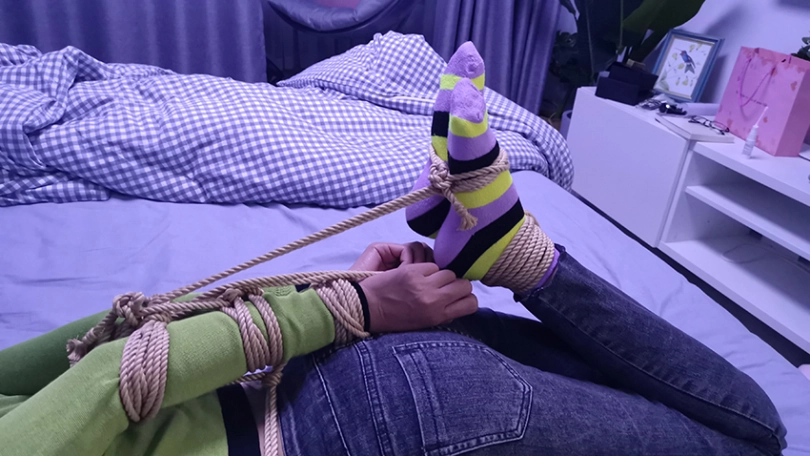 【JS】艾诺 棉袜驷马捆绑 袜子塞嘴 震动